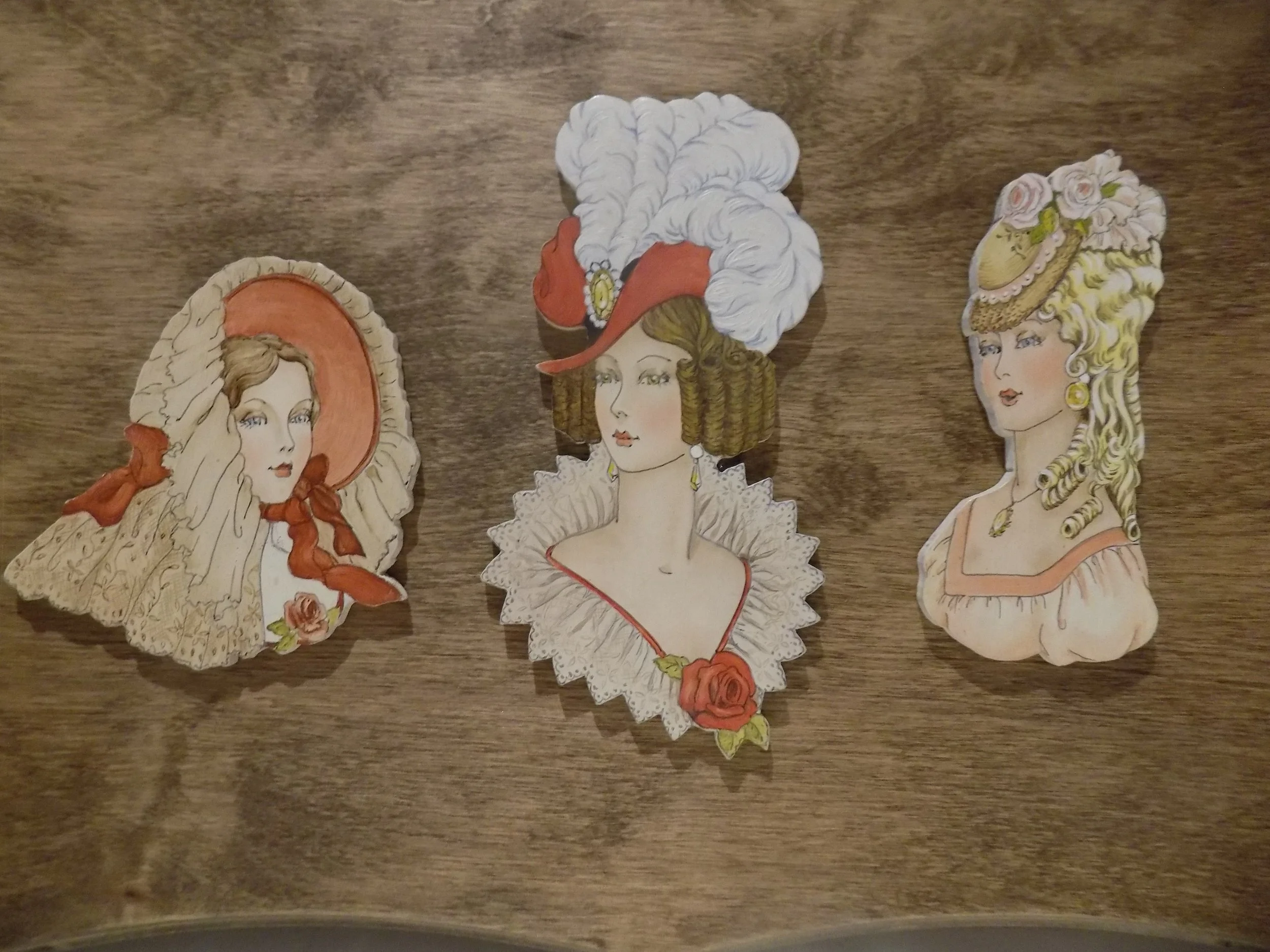 Here are some lady busts Bobbi painted in acrylic on wood cutout. I mounted it on a wood plank, and I display it in my kitchen as a reminder of her and how she relentlessly pursued her dream of being a profitable artist.