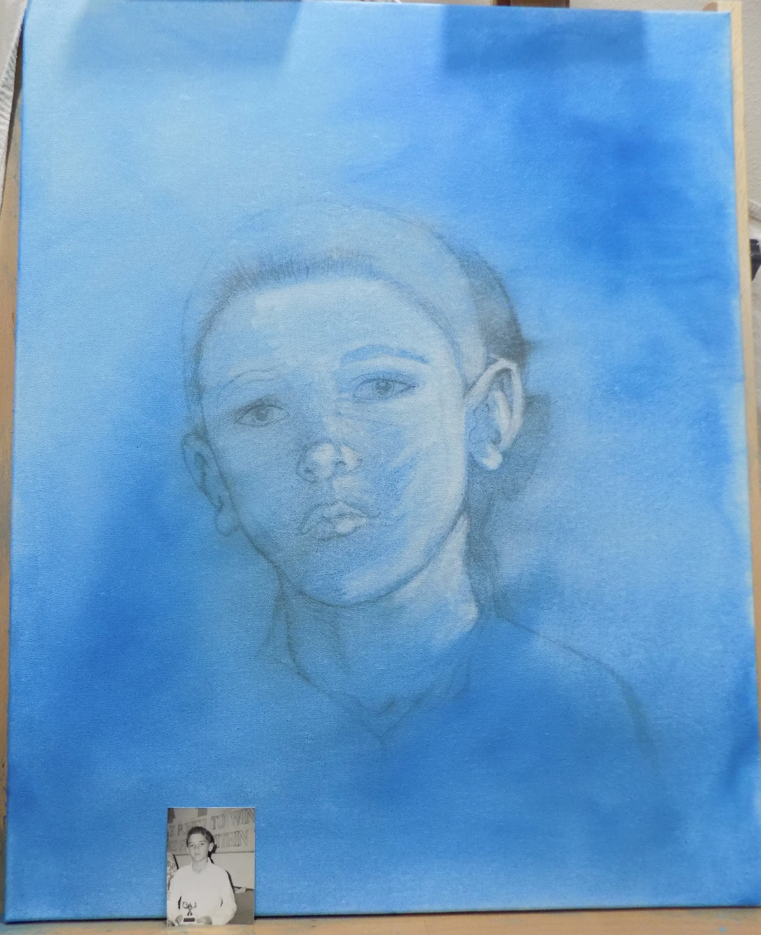 This is the start of a painting that I am working on. It’s my husband, Leland, as a young boy. I hope I can convey the sadness in his eyes. He’s winning an award for writing a short story which for most kids might be a simple task. He struggled so much with writing and spelling growing up. He says at the time that picture was taken, he had given up and was feeling defeated. He was in Special Education when this picture was taken and had zero help at home. Fast forward to today you wouldn’t know how little education he has. His unique way of thinking is impressive. He can fix literally anything, build anything, diagnose most mechanical issues because of the way his brain works. I am truly in awe of him and in love with the way he shows up for me and Noah. My son Noah at this age could be his twin, and he struggles with the same things. I hope it will serve as a reminder to Leland of how far he’s come, and an encouragement to Noah.